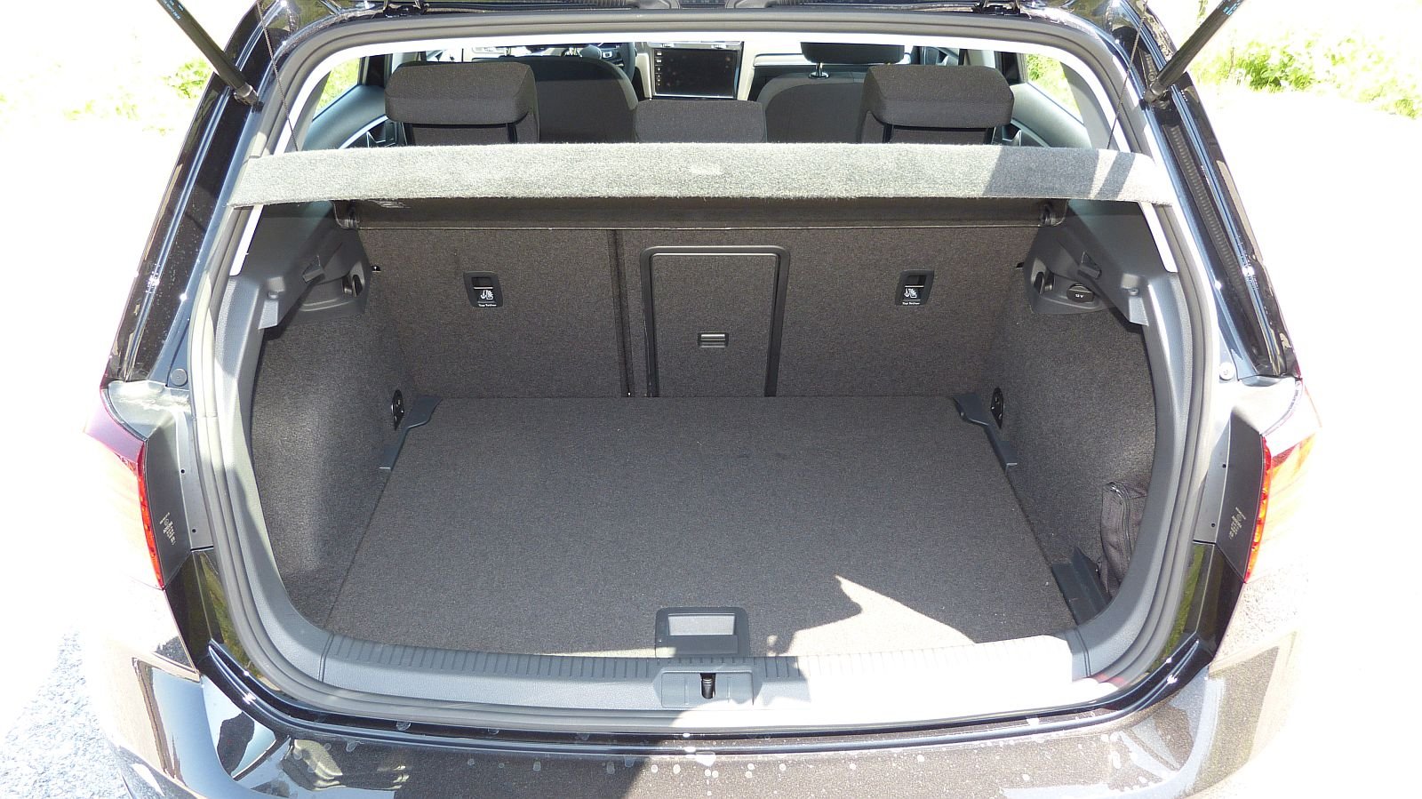Der 305 l fassende Kofferraum des e-Golf ist kein Ladewunder, aber für seine Kategorie absolut ok. Hebt man den Kofferraumboden hoch, kommt darunter ein ganzflächiges, aber ziemlich flaches Abteil hervor, das jedoch genug Platz für die Ladekabel bietet. Konstruktionsbedingt kann das Abteil nicht tiefer bauen, da sich direkt darunter die Traktionsbatterie befindet. Die Ladekante ist nicht zu hoch und die Kofferraumklappe ziemlich breit, was das Verladen grösserer Gegenstände vereinfacht.