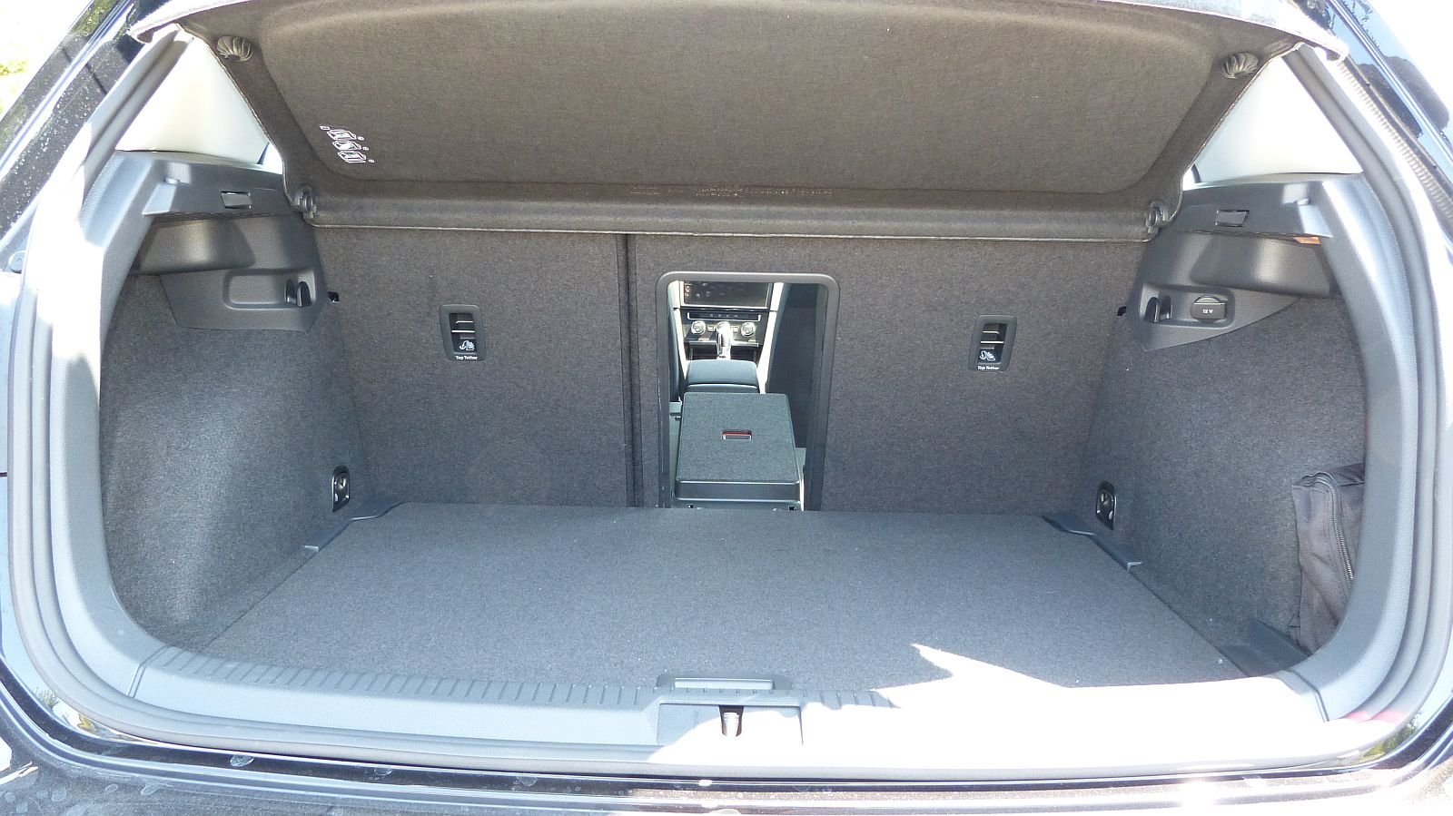Die Rücksitze können im Verhältnis 40 / 60 umgeklappt werden. Positiv fällt die separat zu öffnende Durchreiche in der Mitte auf. Die Rücklehne des Mittelsitzes kann nämlich als Skidurchreiche agieren, klappt man hingegen nur den inneren Teil herunter, ergibt sich daraus eine Armauflage inklusive Getränkehalter.