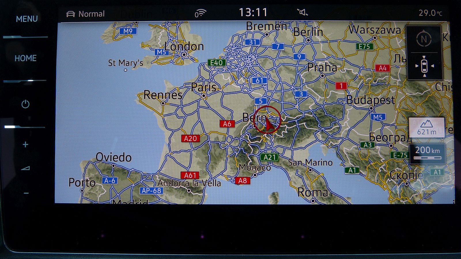 Das Navi vermochte ebenfalls zu überzeugen, nur die Rückfahrkamera liefert ein ziemlich dürftiges Bild, das deutlich von der ansonsten guten und scharfen Bildschirmdarstellung abweicht. Die verschiedenen Seiten des Discover Pro haben weisse Schrift auf einem dunklen Hintergrund. Dies spart Strom und sieht auch elegant aus. Leider ist der Bildschirm aber auch ein richtiger Fingerabdruck-Magnet. Vor allem wenn mal die Sonne auf das Display scheint, kommen die Fingerabdrücke überdeutlich zum Vorschein.